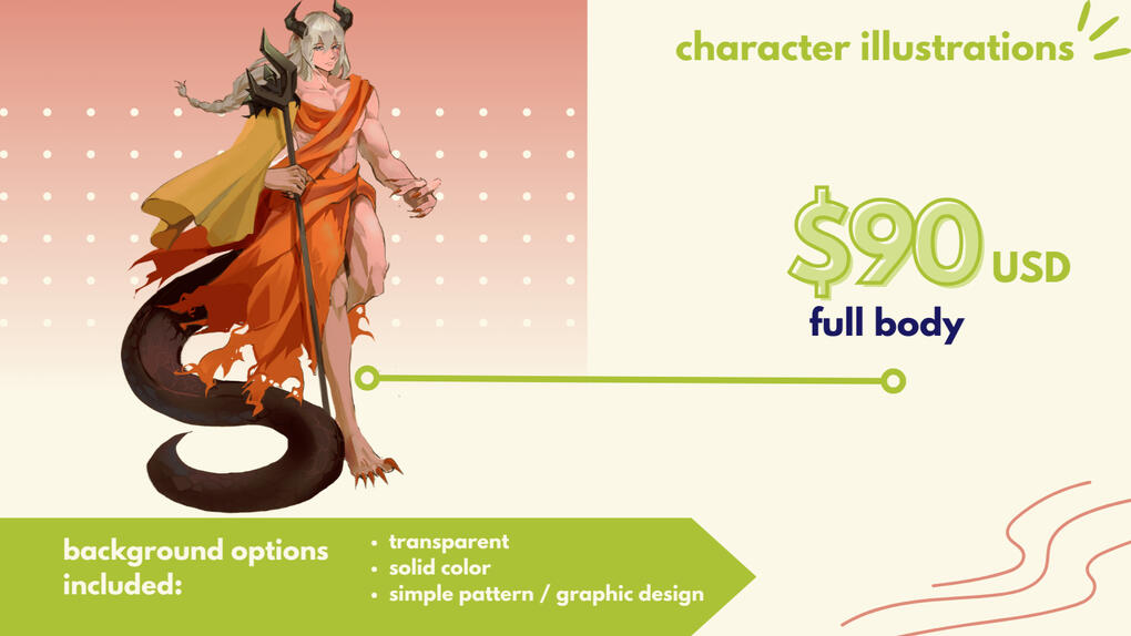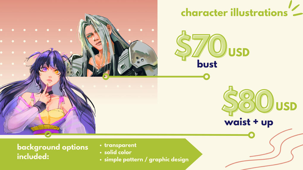 For character illustrations: I require full payment upfront. Receiving this upfront payment will initiate my work on the commission.