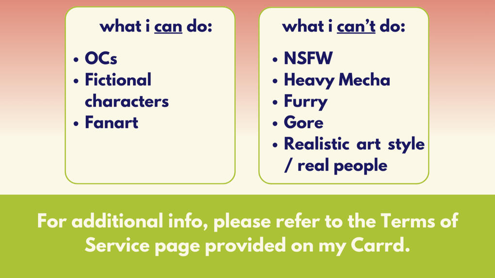 I reserve the right to decline any commission request that I am not comfortable fulfilling. I will try my best to be as transparent as possible about the reason for rejection, but my decision is final.